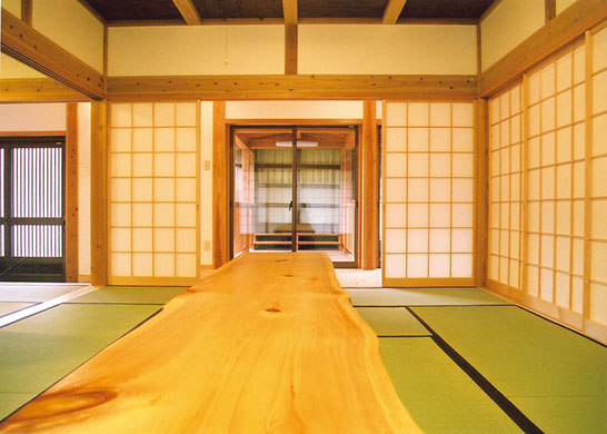 太い杉の柱と梁に、漆喰壁と青畳に日本人のDNAが反応します。
