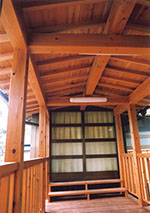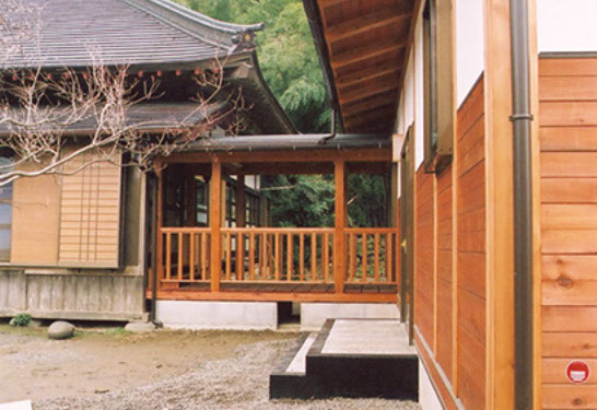 寺の本堂と渡り廊下でつないだ庫裏です。木造軸組の強さと美しさに、