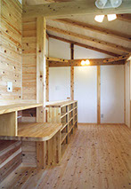 桧の床板が広がるリビング
