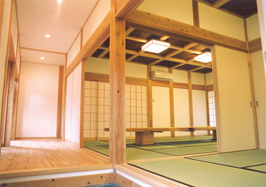 太い杉の柱と梁に、漆喰壁と青畳に日本人のDNAが反応します。